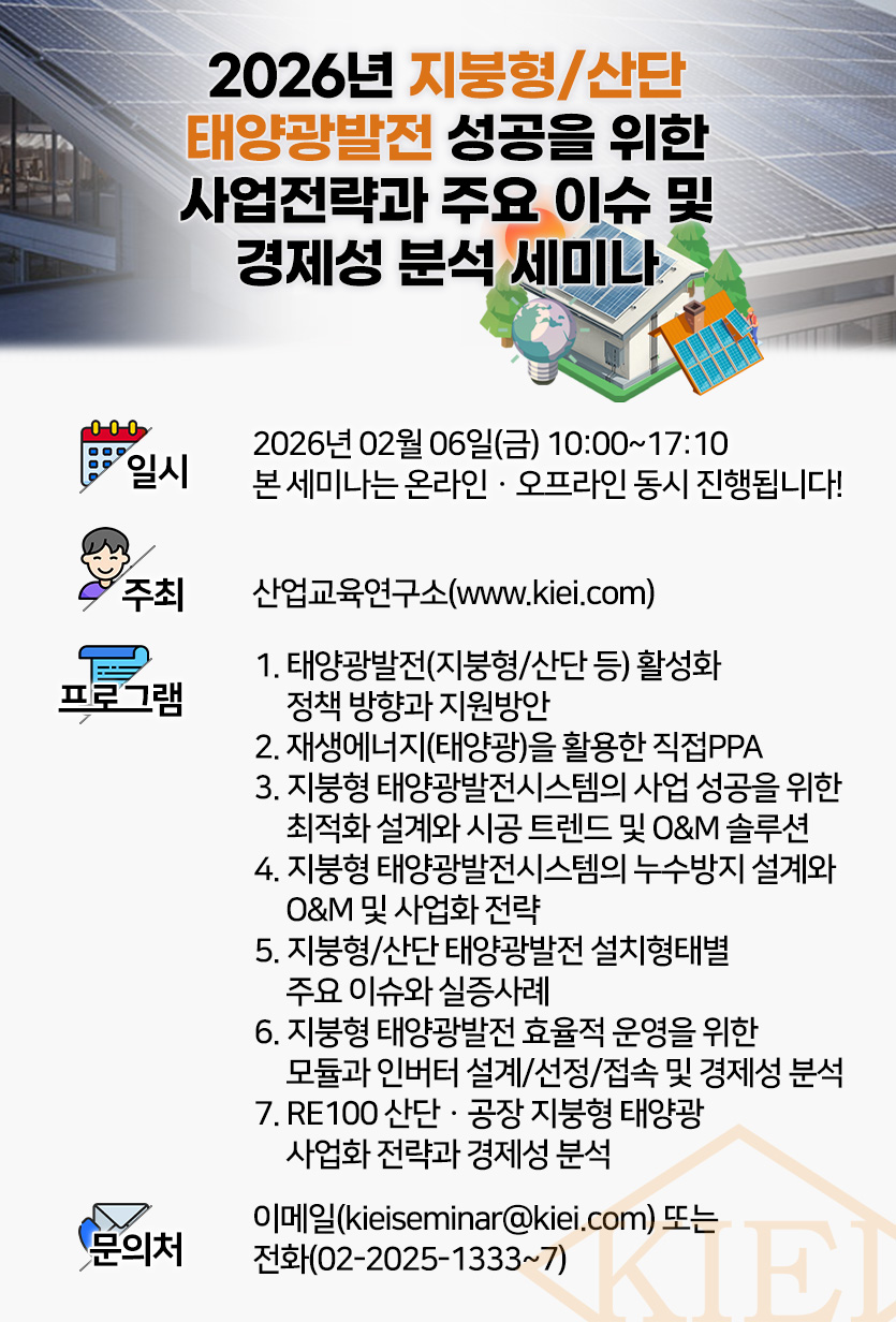 [산업교육연구소] 지붕형/산업단지 태양광발전 세미나 개최 안내